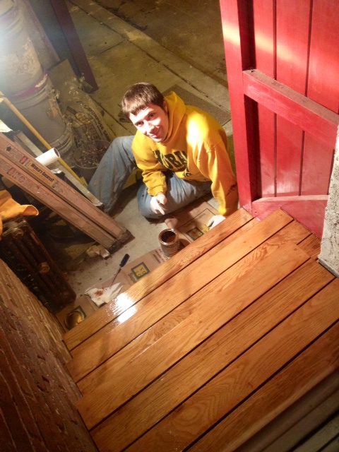 Before it gets too cold, Rob applied another coat of protective poly on our back steps: