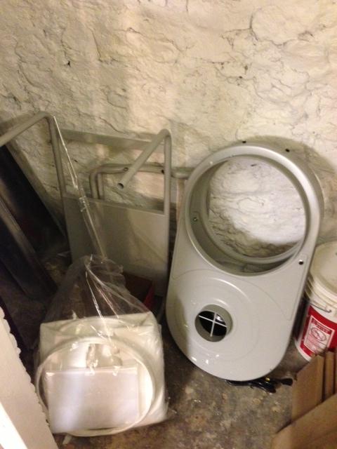 Aaaand we’re back in the basement- assembling the dust collector! In pieces: