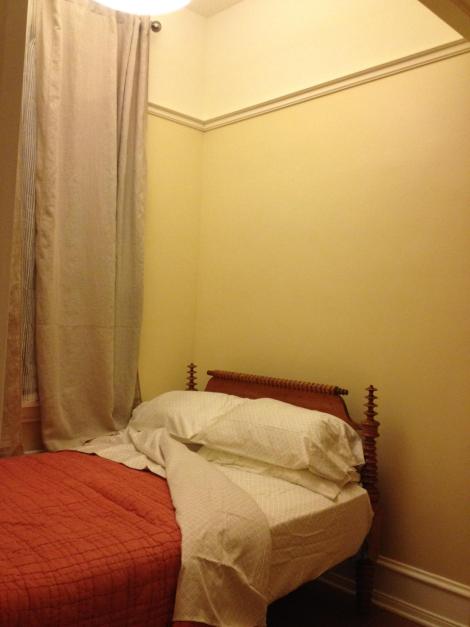 We finished the guest bedroom, and had our first guest: Megan from McElf Glass Studio! We did a weekend charette and really hammered out a lot of the details and design for our stained glass window(s).