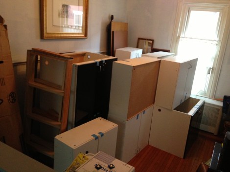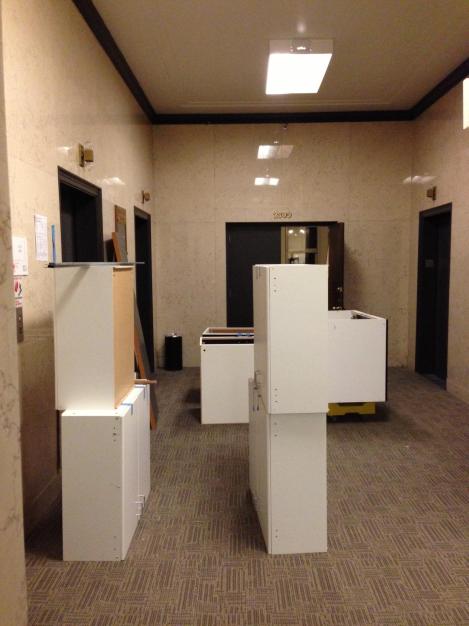 So with a little assistance from another coworker who also was in need of some cabinets we disassembled the copy print room & kitchens in no time.