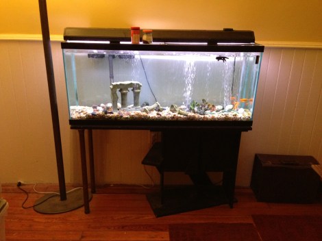 We definitely got our money’s worth out of this stand… I even expanded it from the cabinet section under the right side to include the legs for our current 55gal tank.