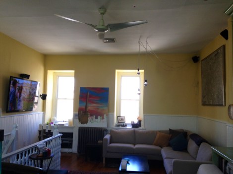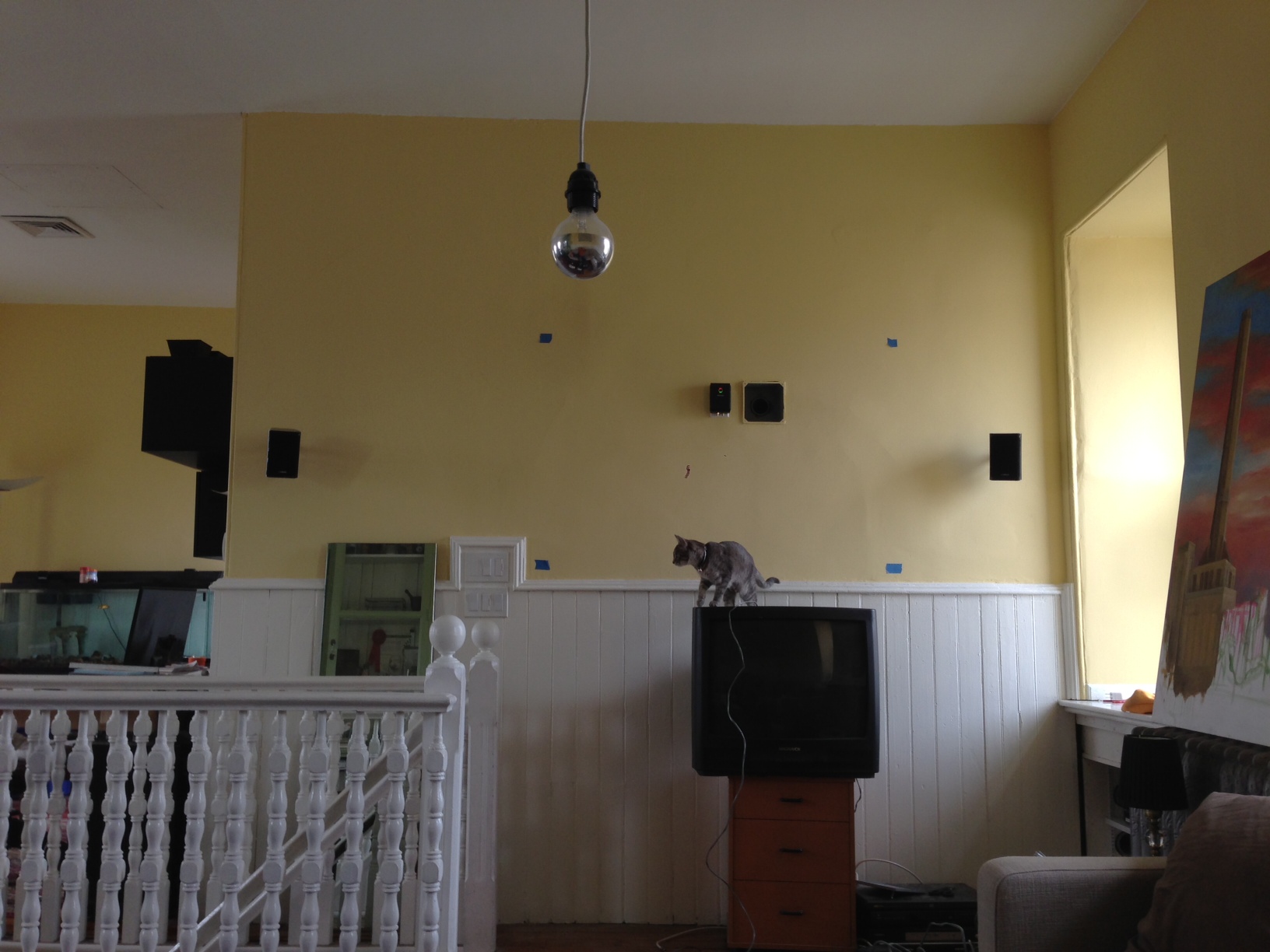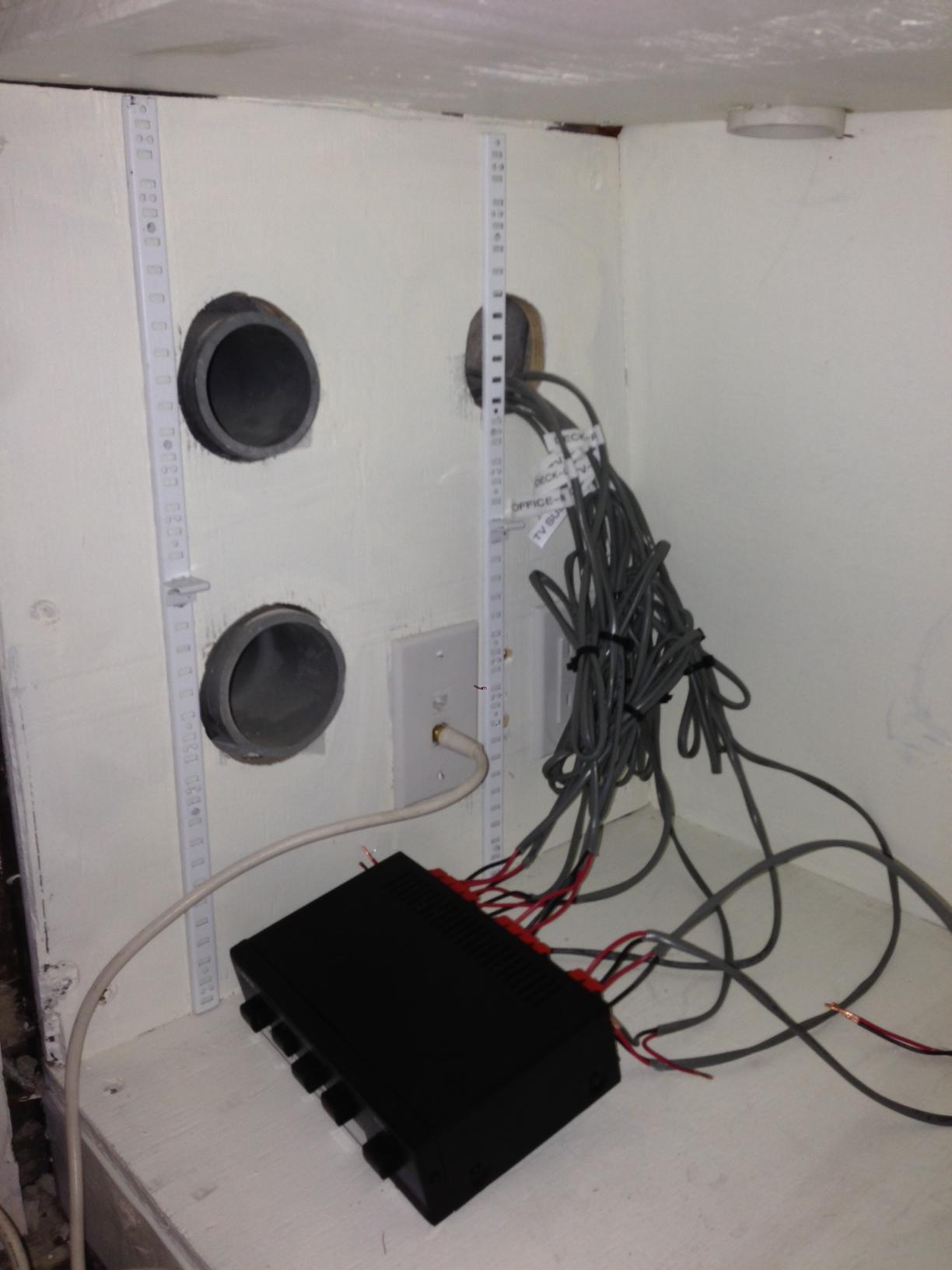 All of the wires that have been dangling out of the walls & ceiling got speakers to cover them up… finally.