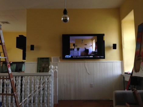 Since we didn’t want to go too crazy, we only upgraded to a 60″, which doesn’t look too bad on this wall.