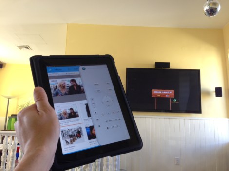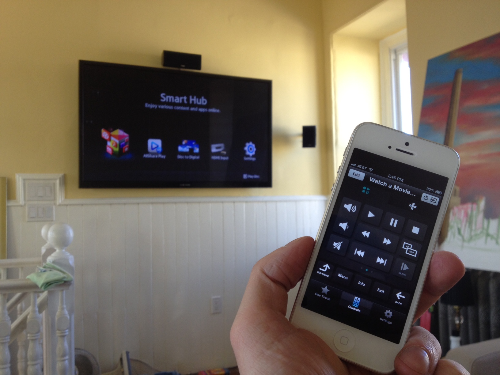 But for the final step we had to figure out to control all this stuff, with most of it concealed behind doors. Well Harmony makes a cool little puck that you control through your network and it has an IR blaster to control all the equipment. Then you can simply control everything through your phone