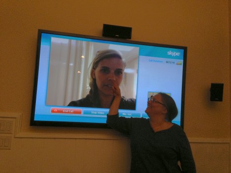 So with the built-in camera it makes it easy to Skype when someone cannot make the family movie marathon… though I don’t know what Kelly’s mom is doing to her sister in this picture?