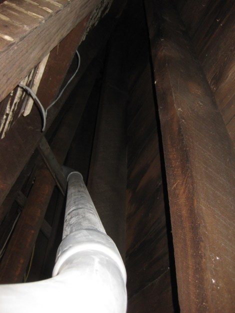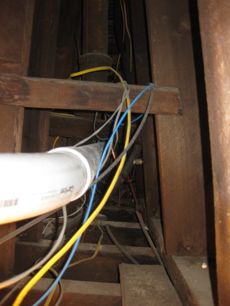 And you may remember from way back in 2009 we had planned ahead for this. We ran conduit inside the walls before insulating them to hide all the wires and cords away. One 2.5″ conduit to the TV: