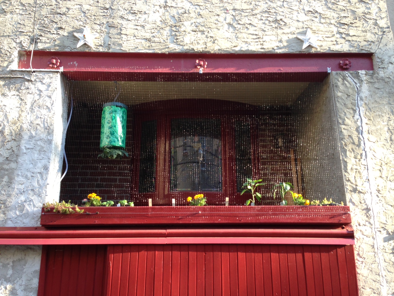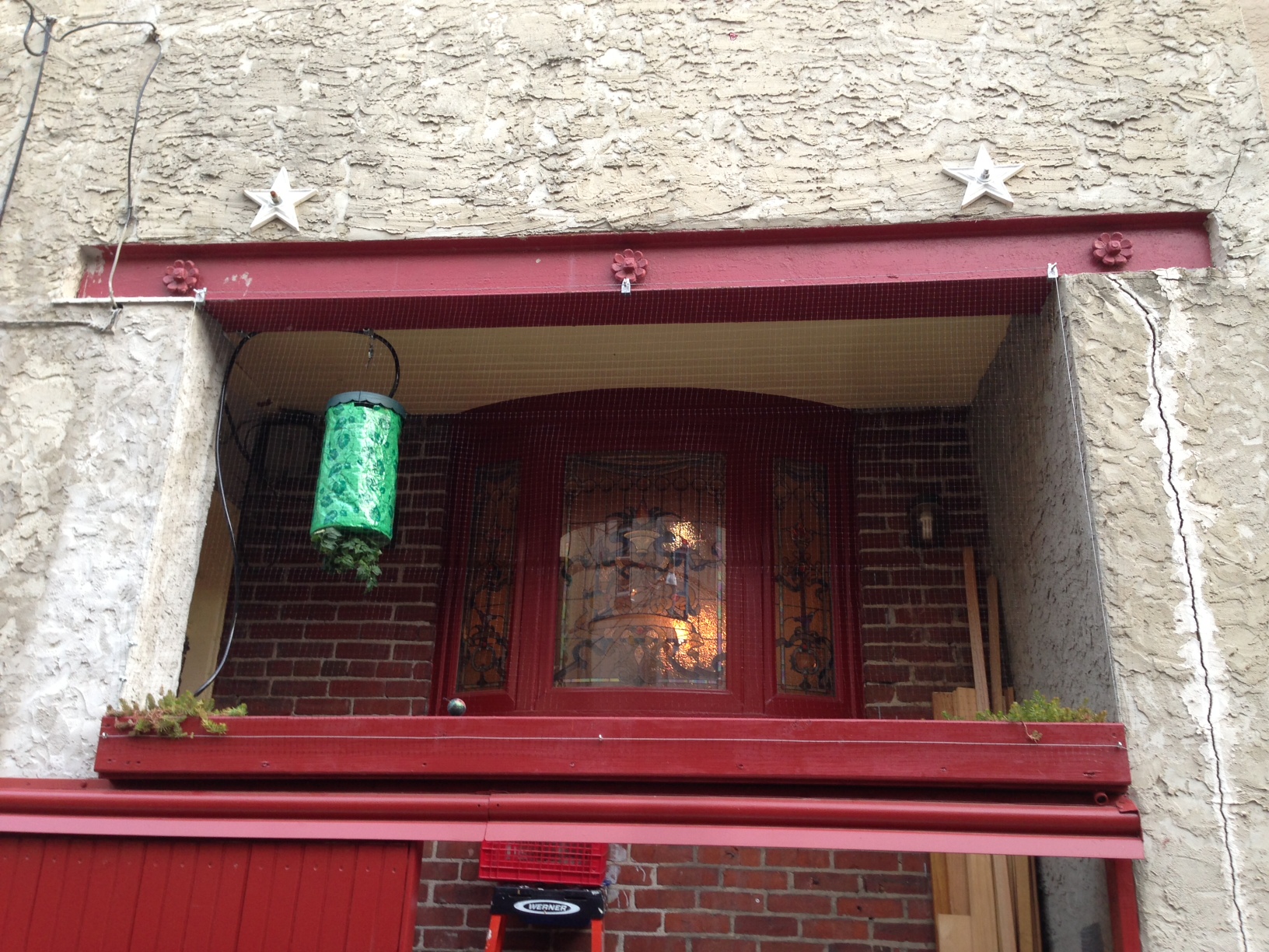 Before we started to plant our vegetable garden above our back gate we put up netting to keep the birds & squirrels out. (Last year we had a squirrel that liked to bury their nuts in our planter and knock all the dirt on the ground!) You can hardly see the netting and it is supported by beam clamps at the top, eye hooks at the bottom, and a stainless steel cable running through the hooks all the way around the net. Hopeful it will do the trick.