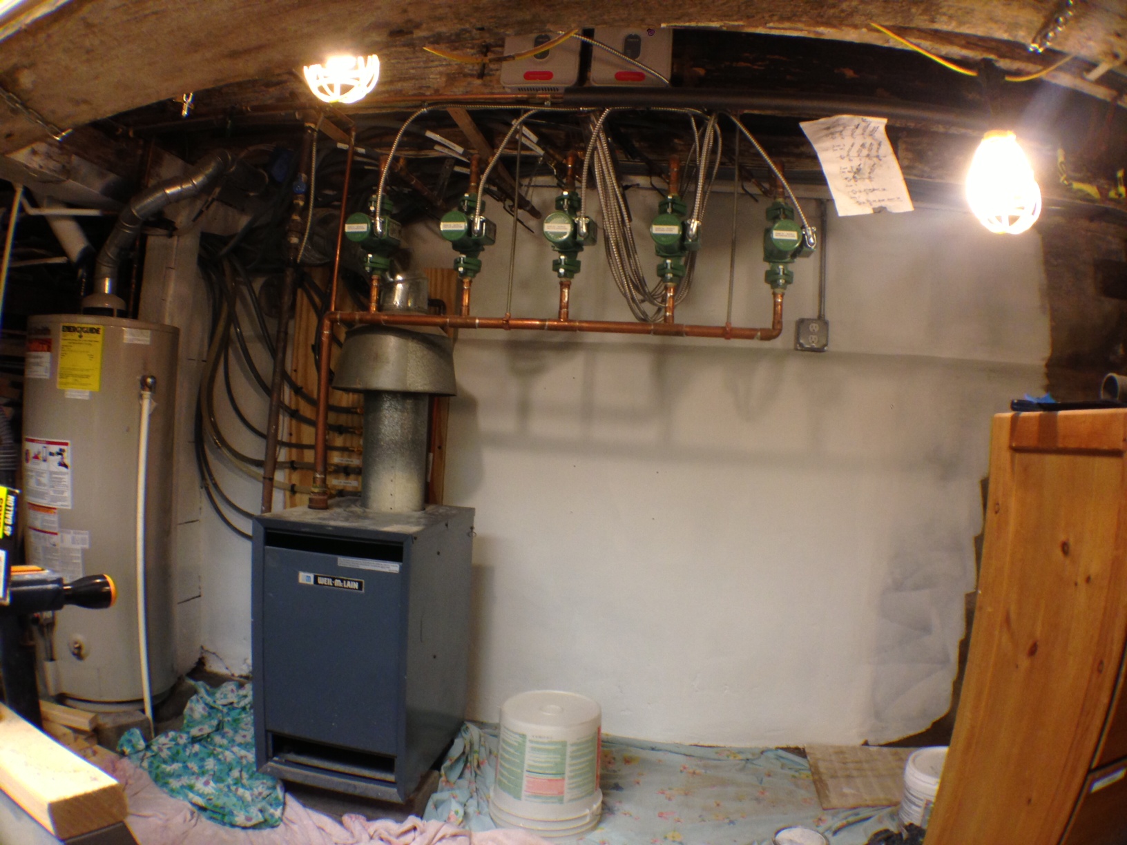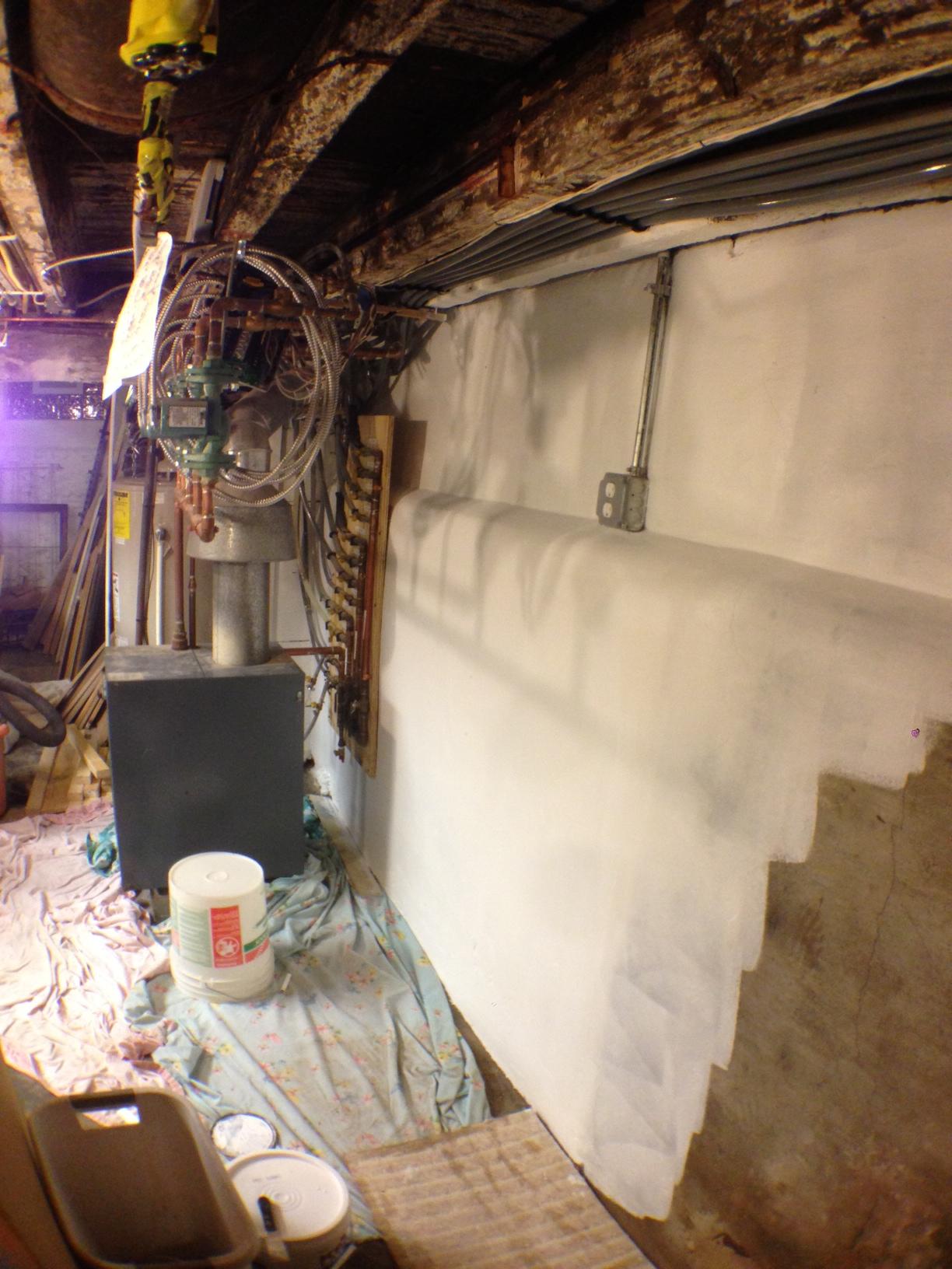 We plan to use the sprayer for most of the basement but I used an old school brush and roller behind the boiler & water heater. I didn’t want to have to mask around all this stuff and I have some plumbing work that needs to be mounted on this wall before we get to spraying.