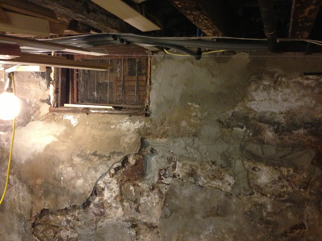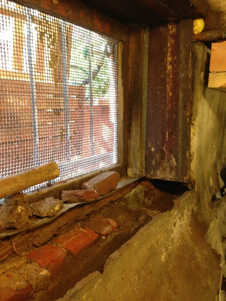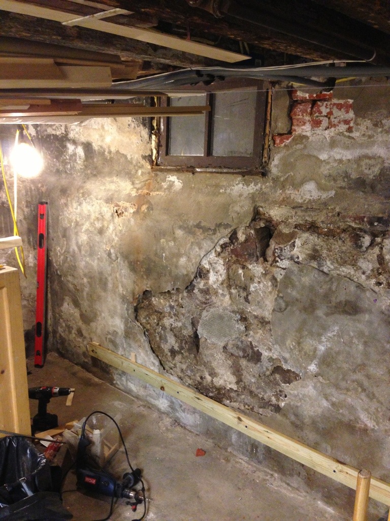 But before we could do anything I had to patch the crumbling masonry. (And taking into account the old stone and brick we had to make our own, softer mortar mix so not to damage the old materials.)