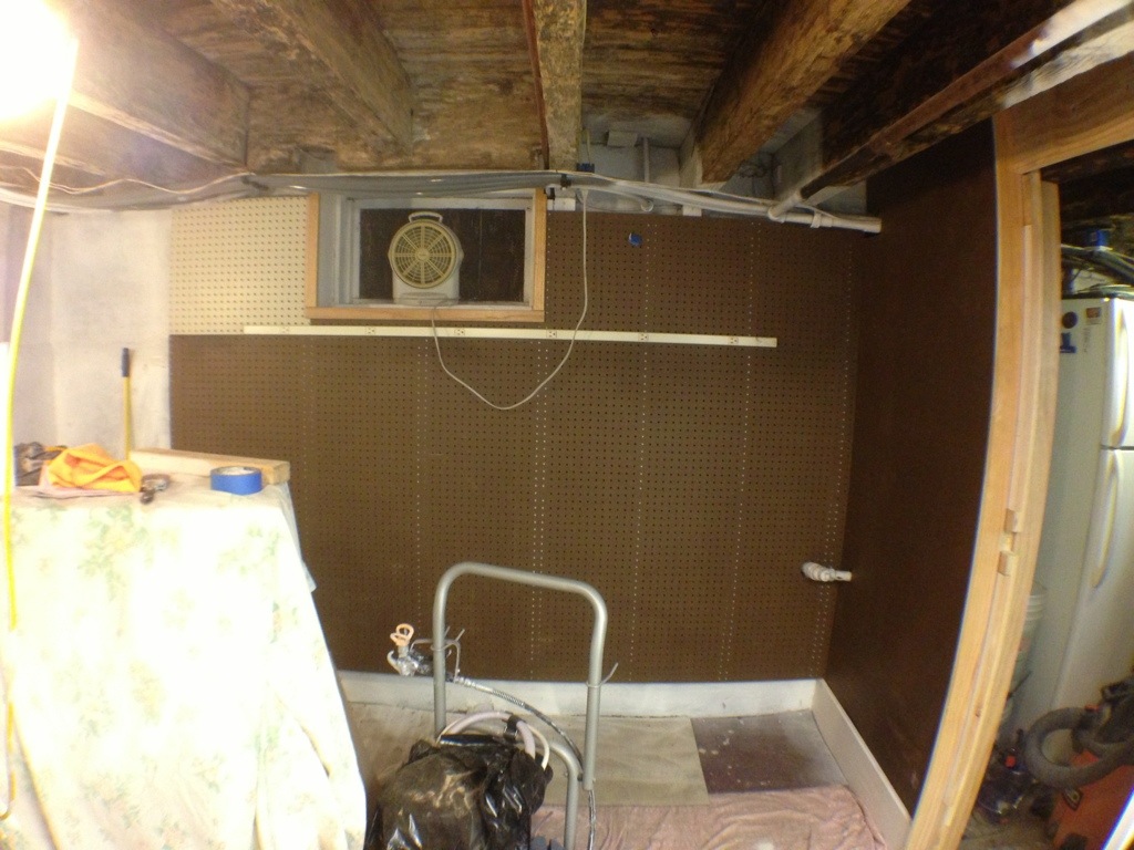 As part of the shop project we wanted to clean up the front wall of the basement and give ourselves more peg board to get organized! Always a lofty goal.