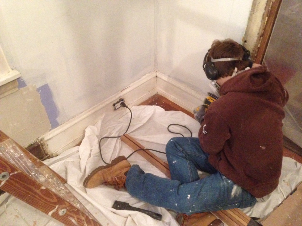My brother-law helped us scrap, putty, & sand all the existing wood trim. Thanks man!