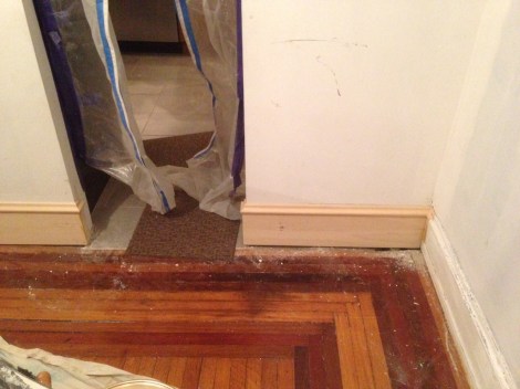 The wall to the kitchen is new (relatively new at this point), so it needed new baseboard to match / tie into the existing.