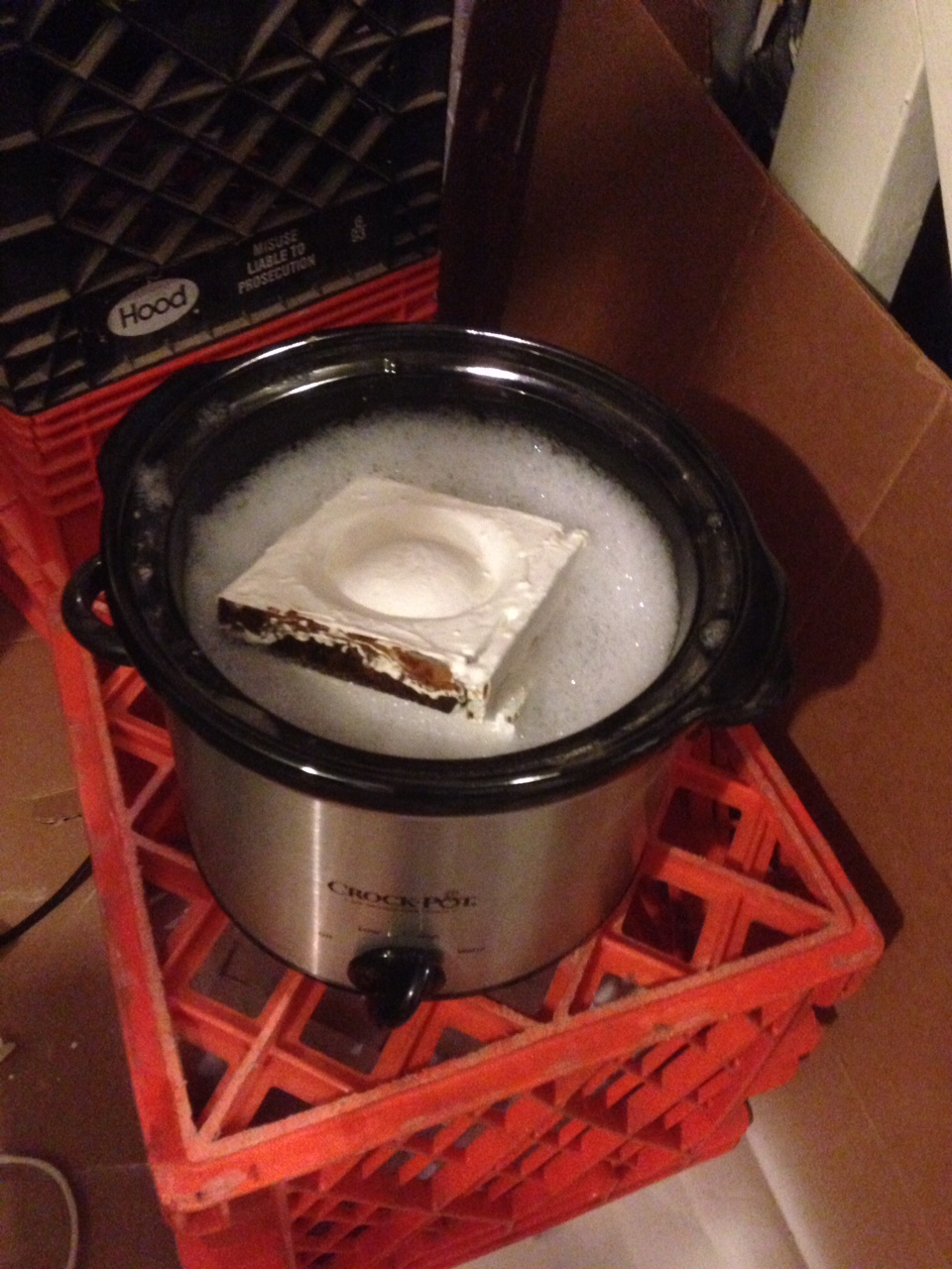Odd Job #4 – Stripping paint off of the old corner blocks, so I got out our crockpot trick, remember this one: https://madisonsquarehome.com/2011/10/10/sunday-slow-cooker/