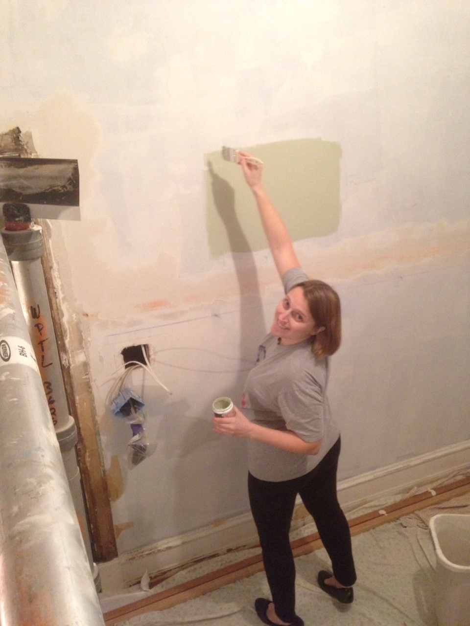Odd Job #6 – And finally Kelly did a paint mock-up. What do you think? It goes great with the Kitchen & Living Room colors.