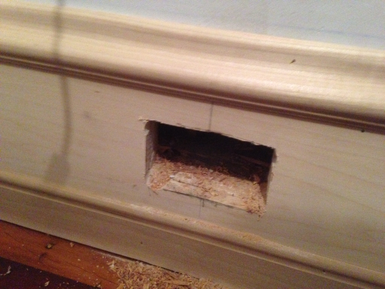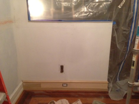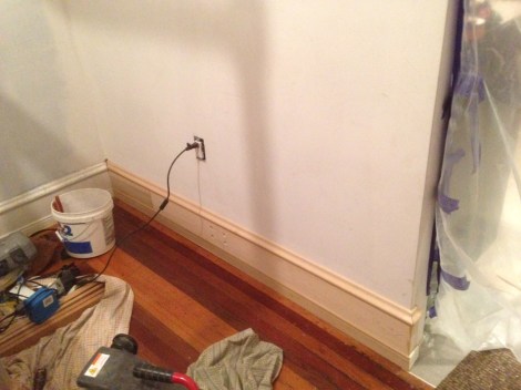 Odd Job #2 – The next annoying task is moving the above wall outlet. All the outlets on our 1st floor were installed in the baseboard, but for some reason our electrician put only this one in the wall (maybe because there wasn’t baseboard there yet?!). The just go way when in the base and don’t muck up the walls.