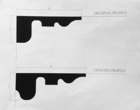 So here is the original profile and the couple of tweaks we made. The biggest change was adding a recess at the wall to make that intersection more forgiving.