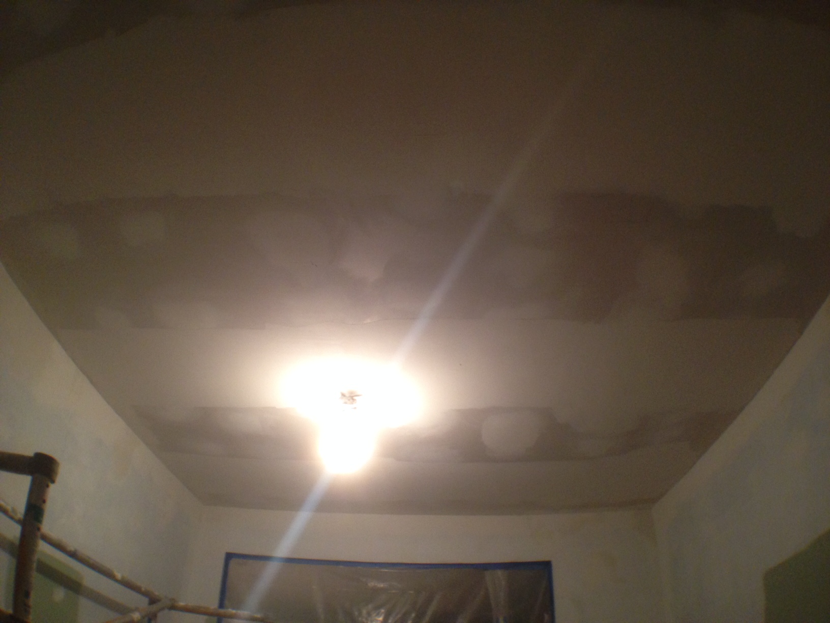 In the mean time, we got 3 coats of spackle on everything so the room is in good shape.