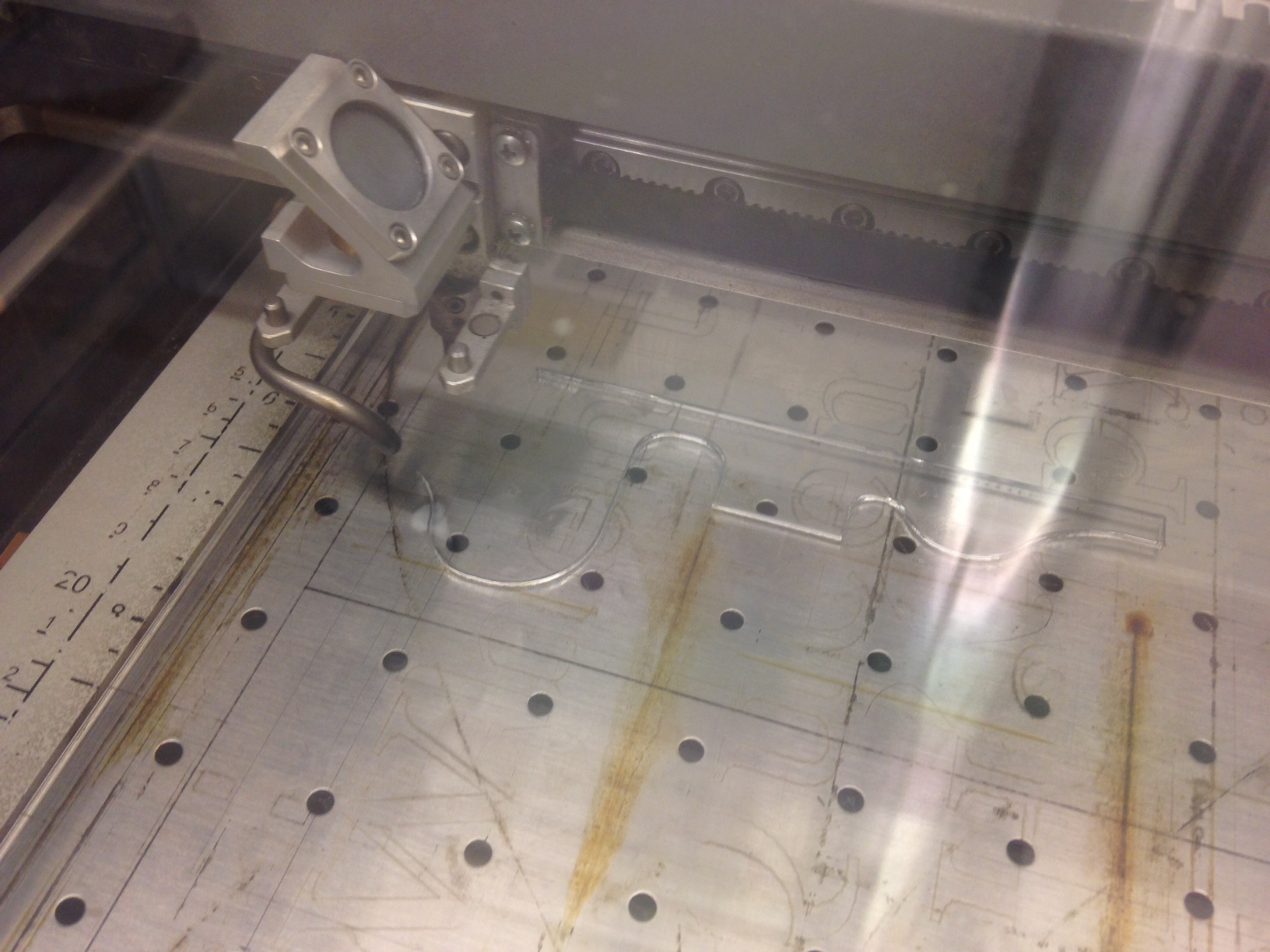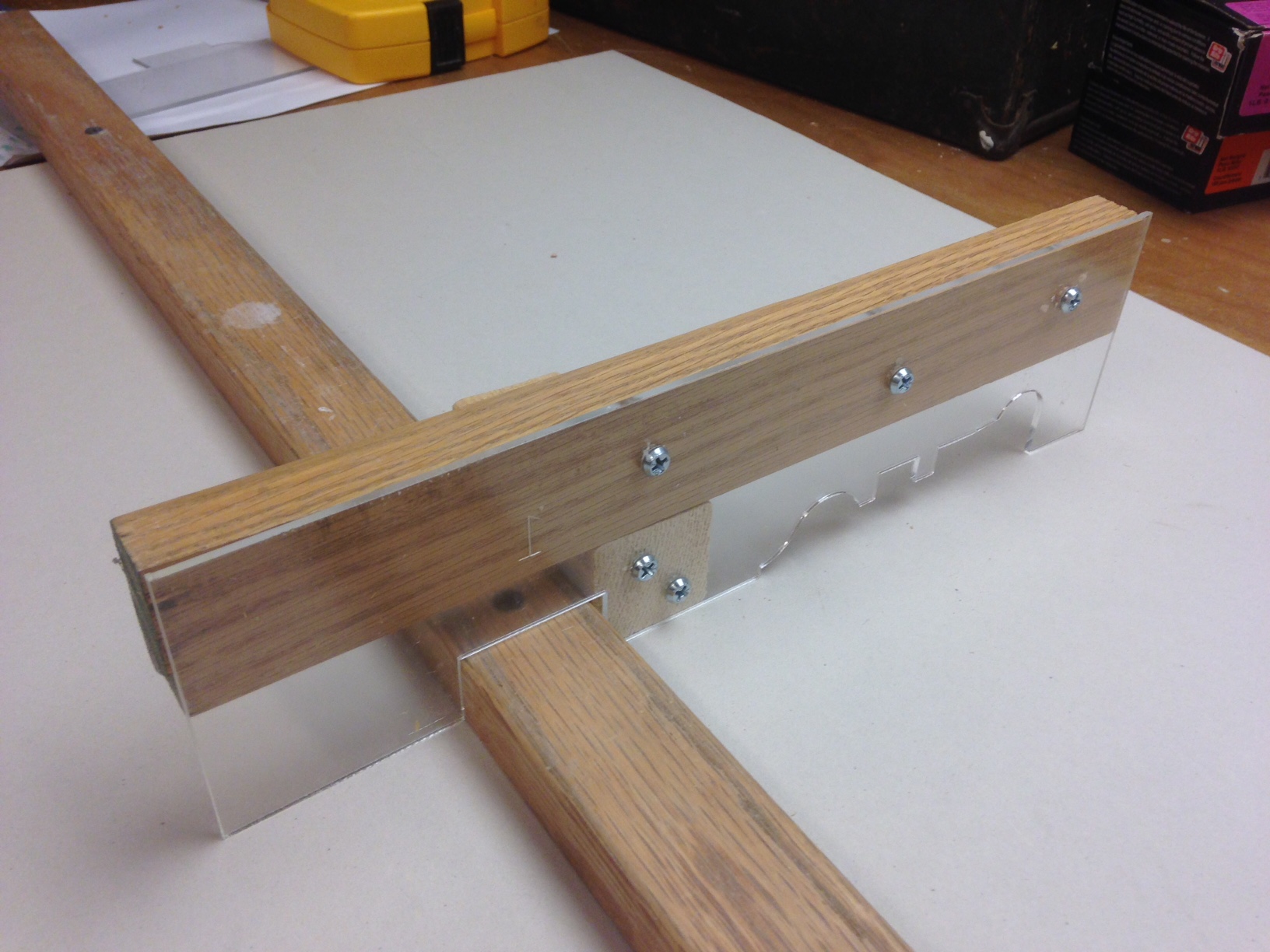 To do a mock up, I cut the above test profile on our office laser cutter and attached it to a wood guide.