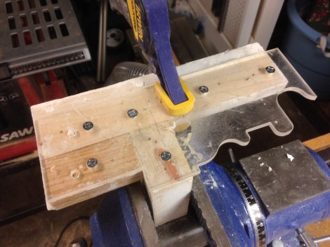On item that quickly became apparent was that the 1/8″ plexiglass was not going to be strong enough when pushed against the plaster if it was already setting up, so I made new profile knives out of 1/4″ plexiglass. These new profiles are much stronger and more rigid and so far have been working great.