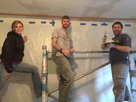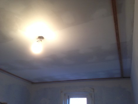 It was great to have help from my sister-in-law & husband, thanks guys! And here we go applying plaster to the ceiling.
