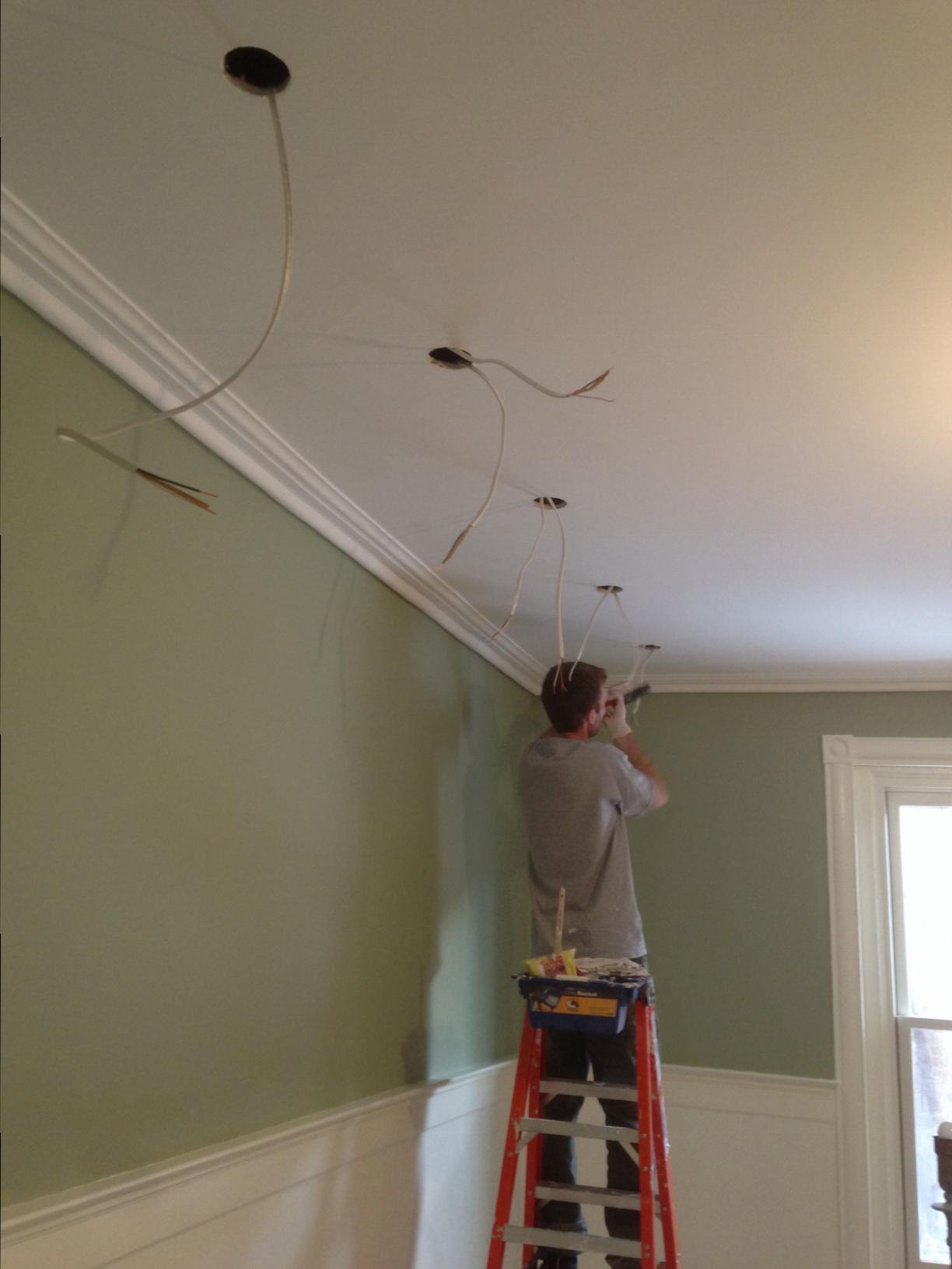 Now for finishing touches, our new downlights go in,