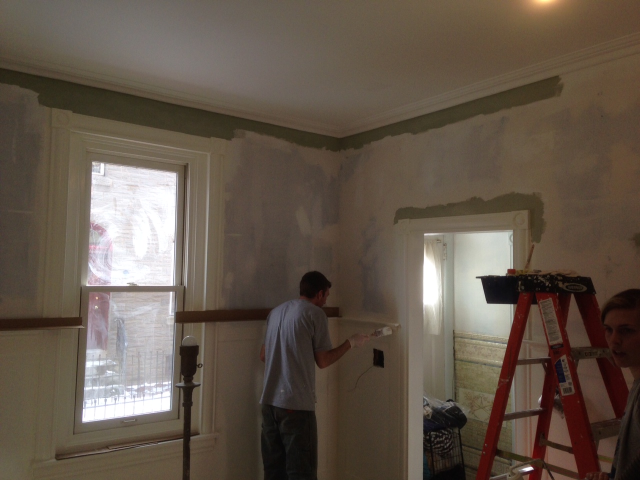And finally time to cut in the wall color! A green from Benjamin Moore’s historic collection.