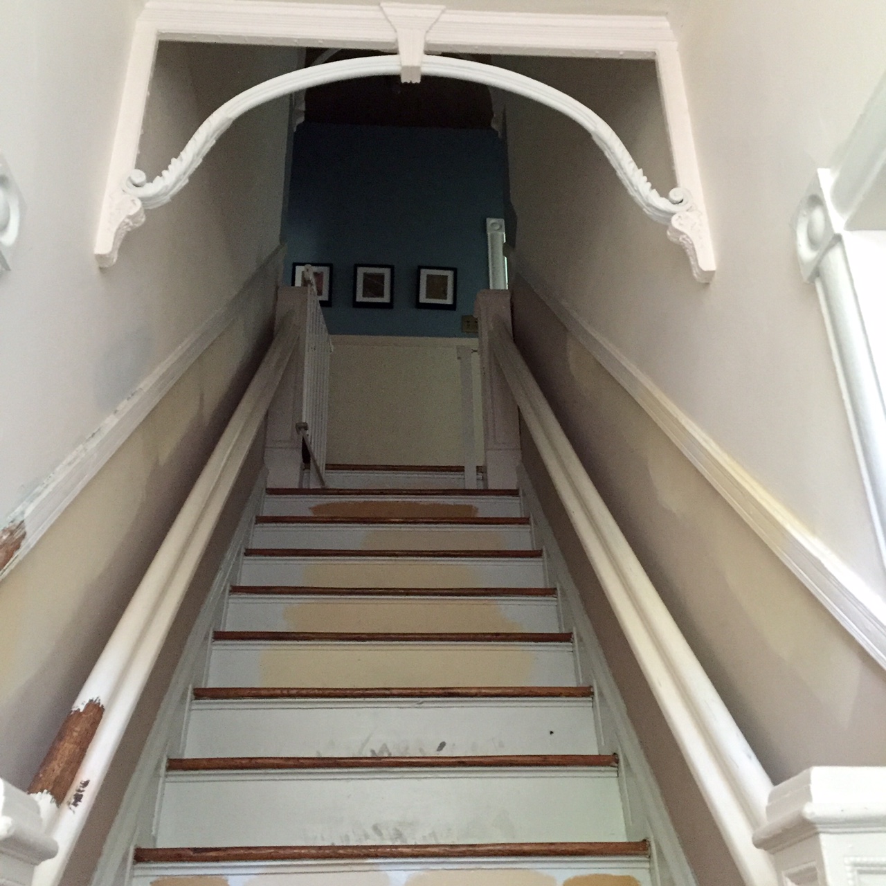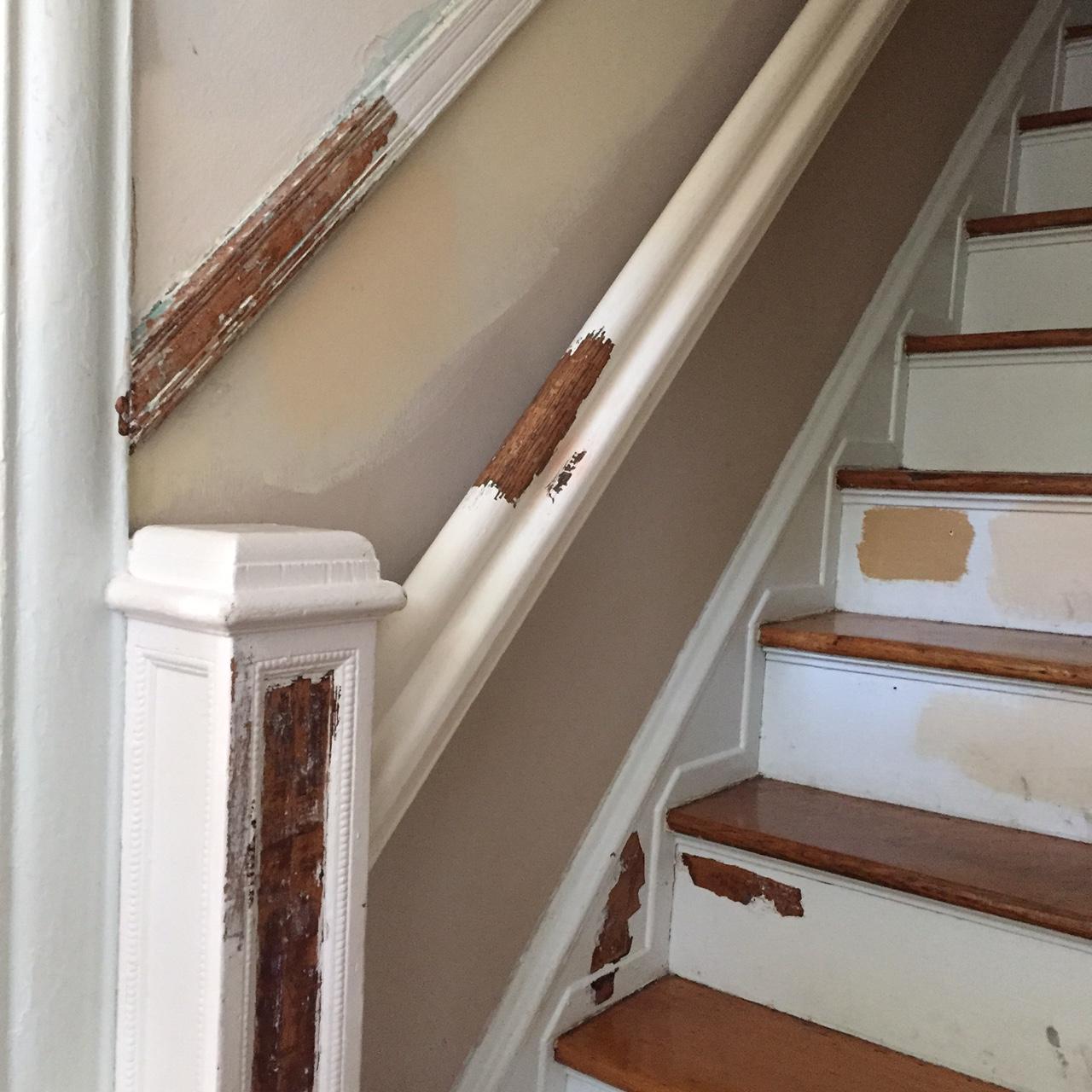 As mentioned before, we started test- stripping some paint and had paint samples on the wall and the risers. For 6-7 years.