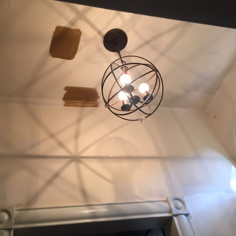We did replace the fixture (and yes those are more paint samples on the ceiling!)