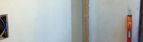 Orange room closet, before: Orange room closet, after: Rob installed, caulked and now patching in the baseboard: After it dries, we can prime the trim and put on the first […]