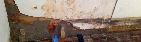 Remember the masonry wall issue in the living room? The mortar patching is done and since we’re drywalling/mudding upstairs, we might as well throw a sheet of 1/2″ back up. […]