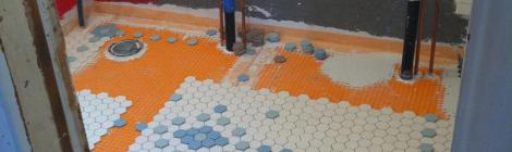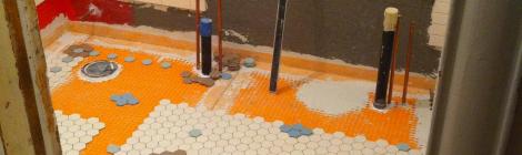 Tonight Rob applied a waterproof tape to the seams and edges of the orange Schluter Ditra underlayment, to prepare for the upcoming floor tile installation (!): This tape is often […]